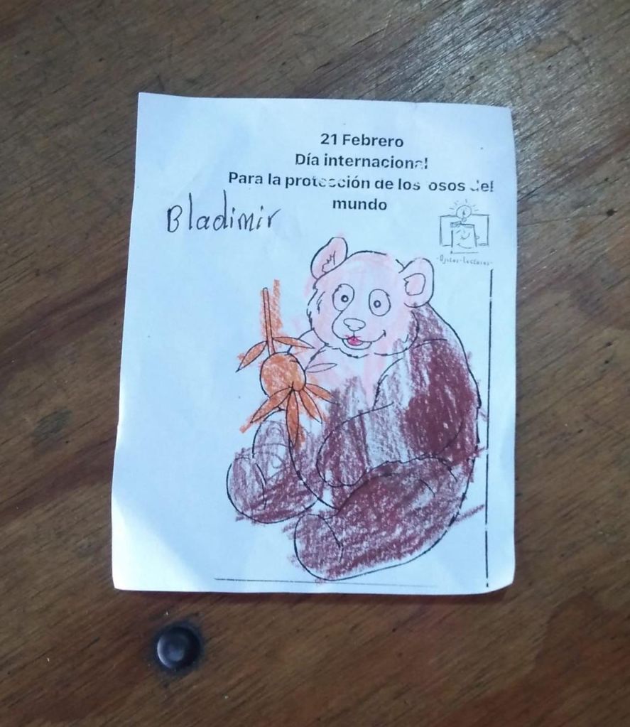 Nuestras incansables, comprometidas y queridas socias de Ojitos Lectores: doña Nidia Arias y Luisa Fernanda Gutiérrez Arias, realizan semanalmente horas del cuento con temas específicos. El día del Oso una buena excusa para promover la conciencia animalista y de protección.